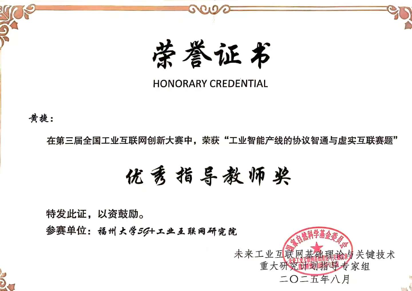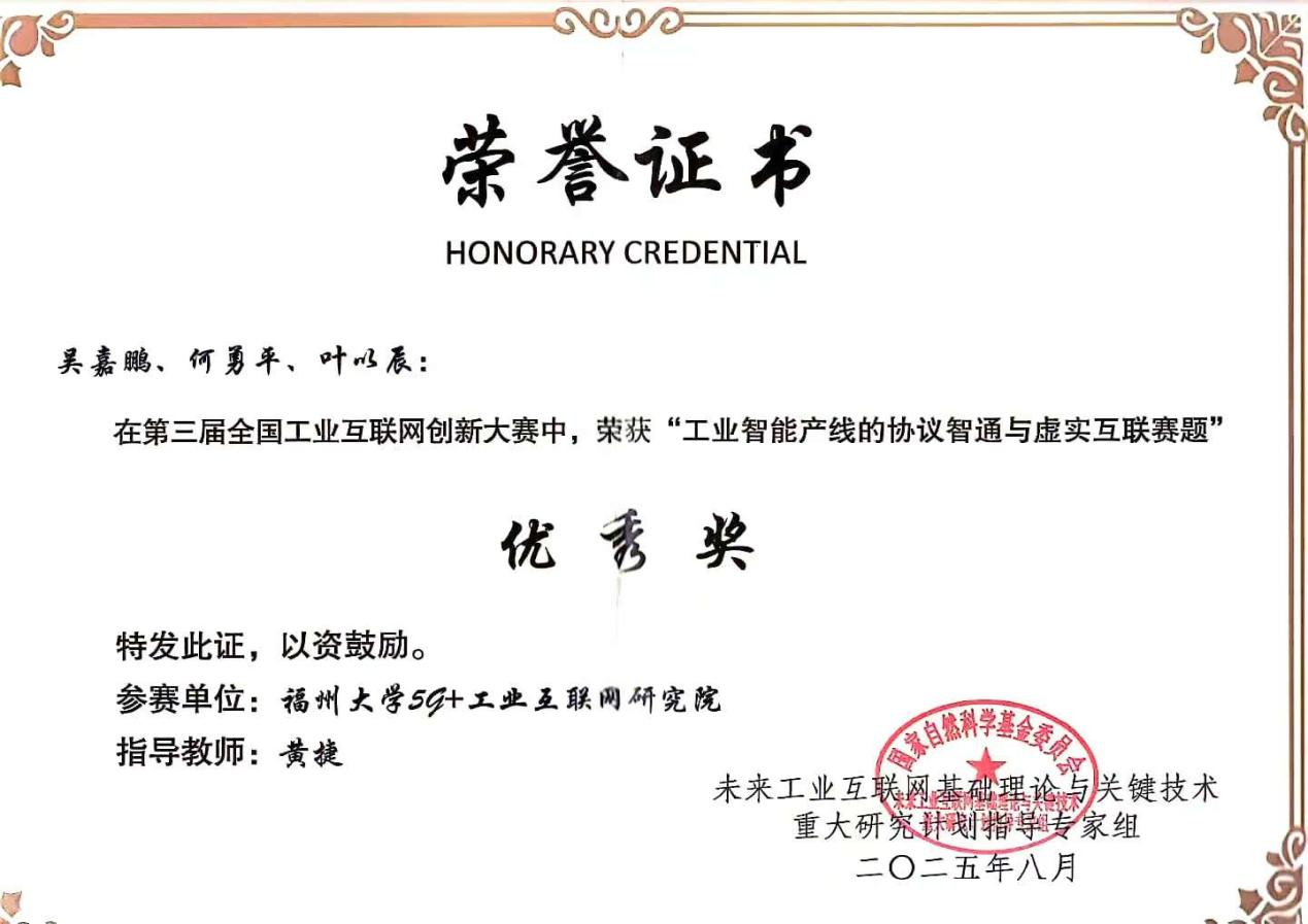 2025年8月20日至21日,第三届全国工业互联网创新大赛决赛在南京航空航天大学圆满落幕。在激烈的竞争中,福州大学5G+工业互联网研究院团队凭借卓越表现,荣获两项优秀奖!