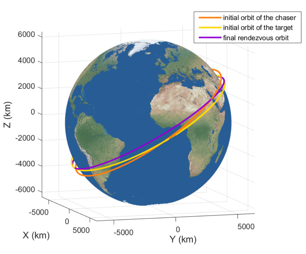论文以3U CubeSat为平台开展了仿真验证。在设定的任务场景中,追踪航天器与目标航天器初始相距925公里,分别位于倾角34.6度和29.8度的近地圆轨道上。仿真结果表明: